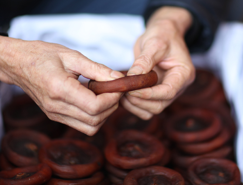11月15日,在貴州省玉屏侗族自治縣朱家場(chǎng)鎮(zhèn)魚塘村,農(nóng)民在制作柿餅。