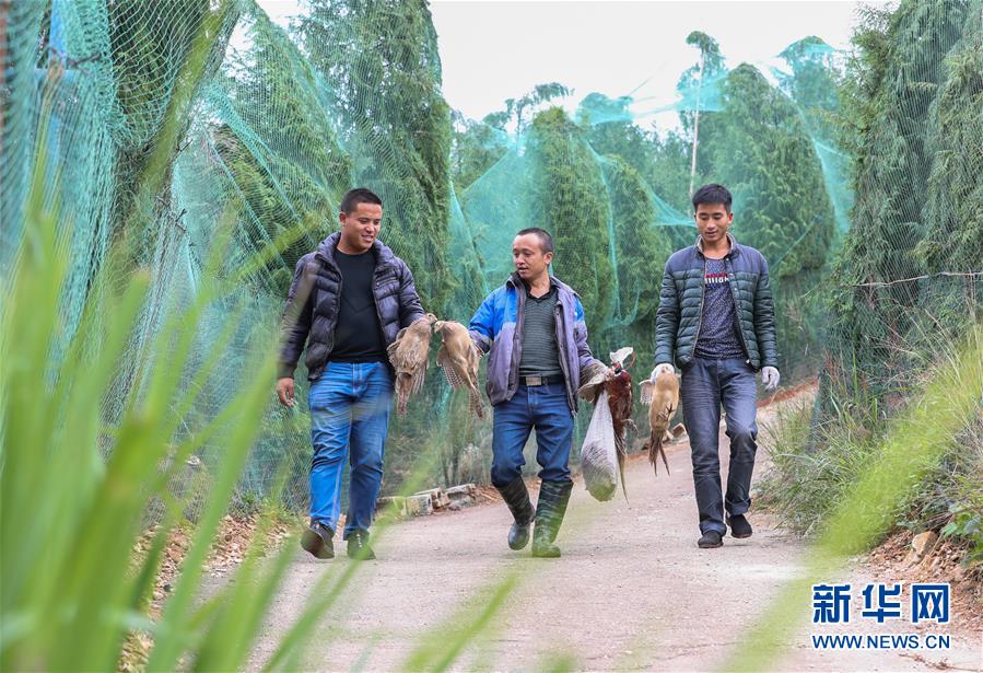 11月21日,姚林在養(yǎng)殖基地查看即將出欄的七彩野山雞。新華社記者 楊楹 攝