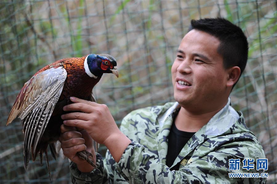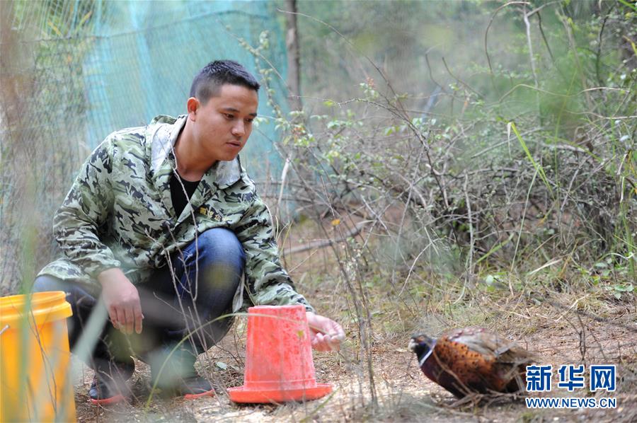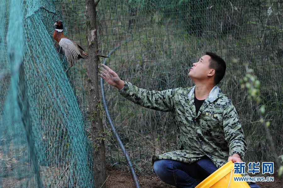 11月21日,姚林在養(yǎng)殖基地管護七彩野山雞。新華社記者 楊楹 攝