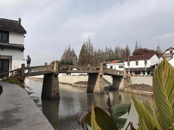 山塘村因一橋橫跨滬浙而出名,跨過石板橋,從橋南的浙江省平湖市廣陳鎮(zhèn)山塘村村委會(huì)步行到橋北上海市金山區(qū)廊下鎮(zhèn)山塘村村委會(huì)只要五分鐘,石板橋不到20米長,橋兩頭的南北山塘卻是跨省行政區(qū)。