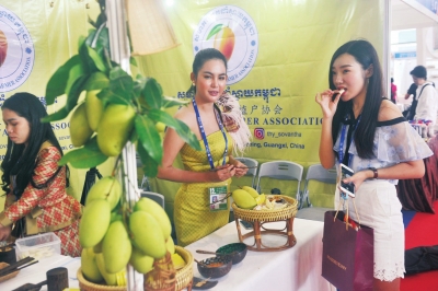 9月12日,在中國-東盟博覽會柬埔寨商品館,一名觀眾在品嘗柬埔寨傳統(tǒng)小吃。喻湘泉攝