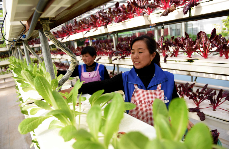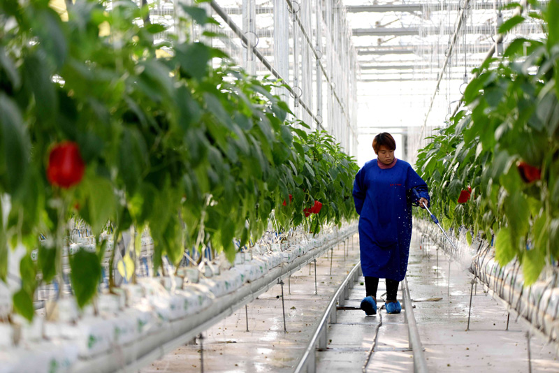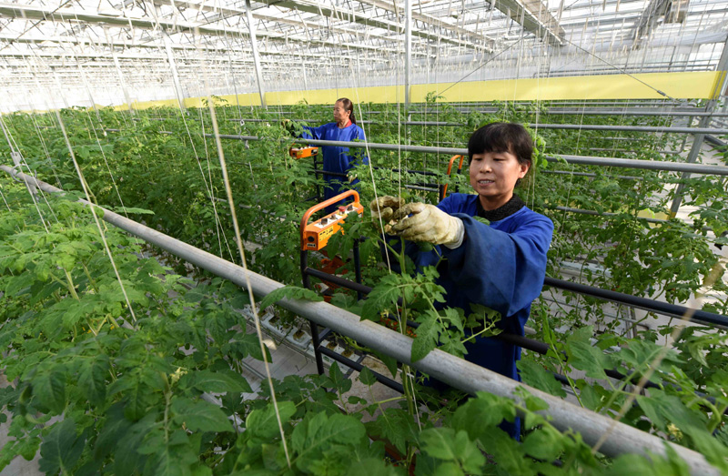 12月27日,南和縣賈宋鎮(zhèn)一家現(xiàn)代農(nóng)業(yè)示范園區(qū)工人在智慧溫室內(nèi)工作。