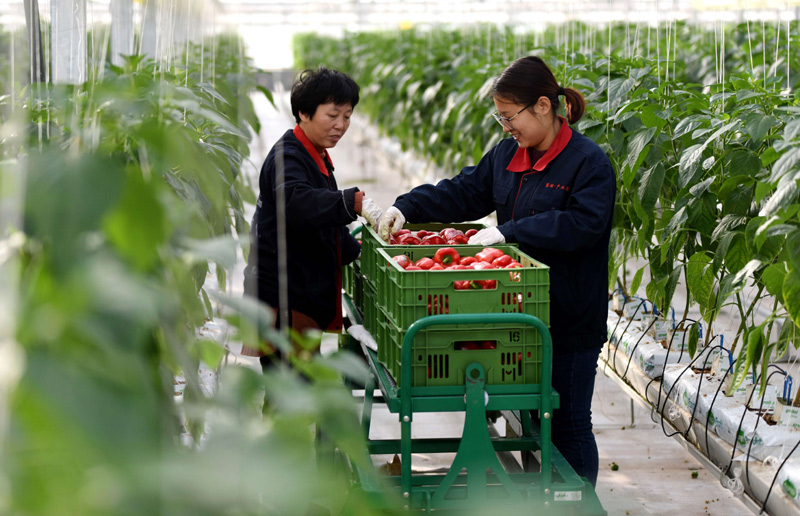 12月27日,南和縣賈宋鎮(zhèn)一家現(xiàn)代農(nóng)業(yè)示范園區(qū)工人在整理采摘的彩椒。