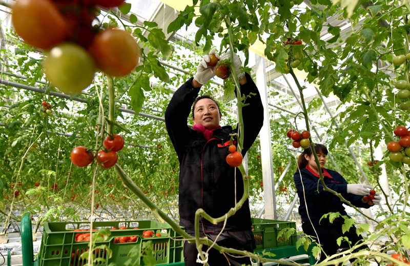 12月27日,南和縣賈宋鎮(zhèn)一家現(xiàn)代農(nóng)業(yè)示范園區(qū)工人在采摘西紅柿。