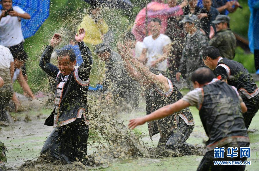 6月16日,村民在花垣縣十八洞村進行稻田抓魚比賽。