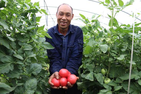 作為家里的頂梁柱,為了一家人能過上好日子,憨厚實在的張軍廷每天天不亮就和妻子到地里干活,翻耕田地、整理溝渠、修剪枝葉,為西紅柿澆水、除蟲、除草、打頭、纏秧.....無論刮風(fēng)還是下雨,無論烈日還是嚴寒,扶貧基地里,總少不了他夫妻倆忙碌的身影。2017年,張軍廷凈收入3萬多元,成功摘下貧困帽子。