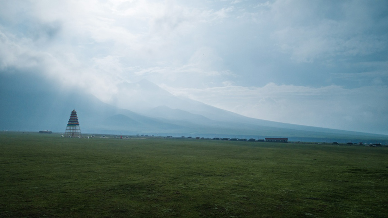 6月20日,祁連山生態(tài)牧場的一名工作人員在收拾帳篷賓館。
