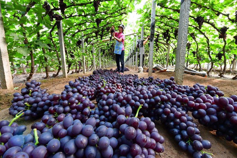 7月3日,唐山海港經(jīng)濟(jì)開發(fā)區(qū)王灘鎮(zhèn)趙灘村果農(nóng)在采摘葡萄。