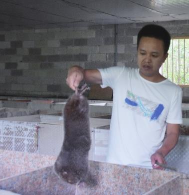 去年初,左羅的竹鼠圈舍搬了新址。老圈舍在湖南境內,離家太遠,每天要來回跑四五趟,身體吃不消。新圈舍離家很近,父母可以常來幫忙。過完年,他從云南引進了4萬元的中華鼠苗,又在大龍周邊增進1萬元的竹鼠苗。