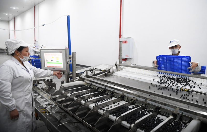 7月10日,重慶南川嘉藍(lán)悅霖農(nóng)業(yè)科技發(fā)展有限公司工作人員在分揀藍(lán)莓。