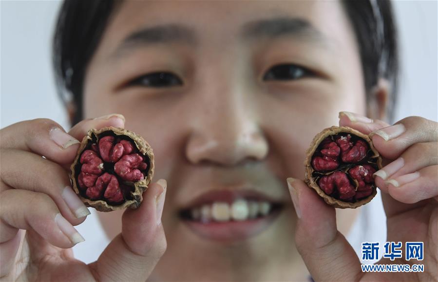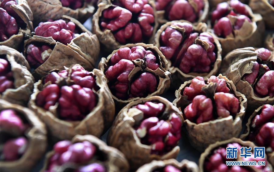 位于秦嶺深山的陜西省洛南縣是傳統(tǒng)的核桃生產(chǎn)大縣,全縣種植核桃面積達(dá)70萬畝,但長期受困于“產(chǎn)量低、效益差、特色不明顯、群眾種植積極性不高”的瓶頸。2015年底,洛南縣肉聯(lián)廠下崗職工董兆斌成立盛鑫紅仁核桃專業(yè)合作社,引進(jìn)紅仁核桃特色品種,經(jīng)過繁育示范推廣,目前已建成標(biāo)準(zhǔn)化紅仁核桃引種示范基地1200畝,2018年帶動65戶貧困戶實(shí)現(xiàn)脫貧。新華社記者 陶明 攝