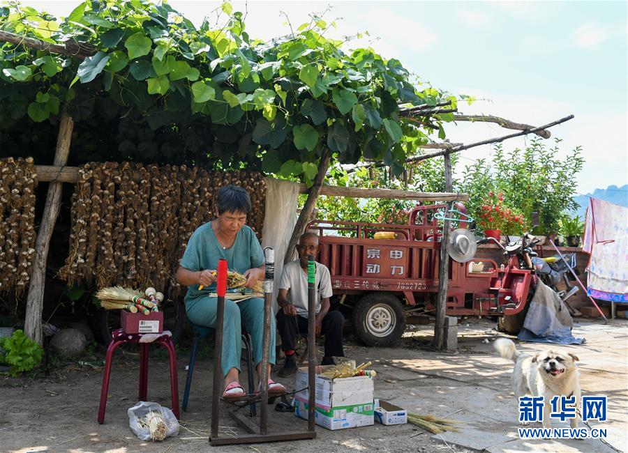 8月5日,巴林左旗林東鎮(zhèn)新房身村農(nóng)民畢翠玲在家中制作笤帚苗用品。