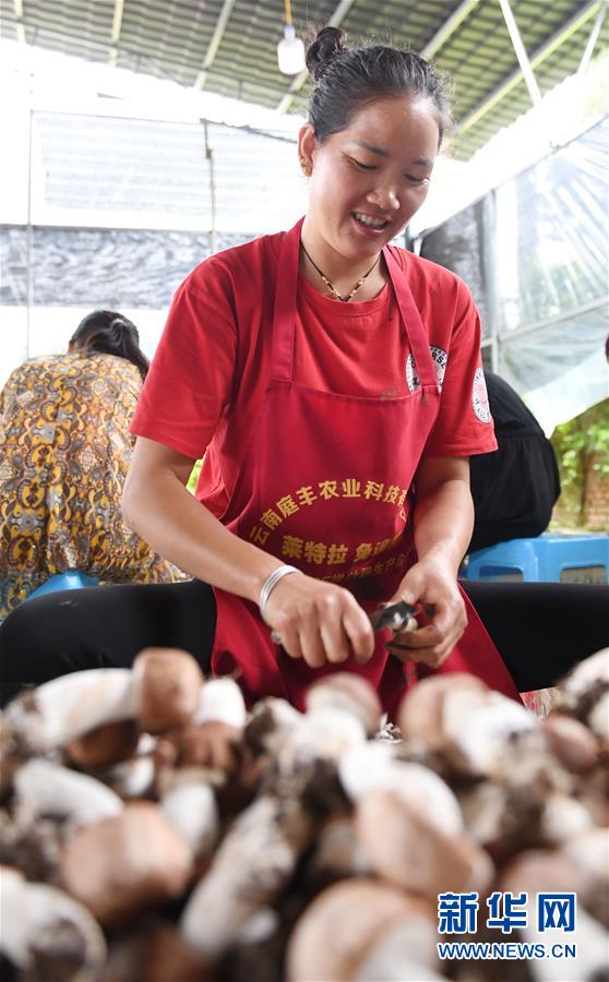 8月6日,工人在丘北縣雙龍營鎮(zhèn)新溝農(nóng)場種植基地采收姬松茸。