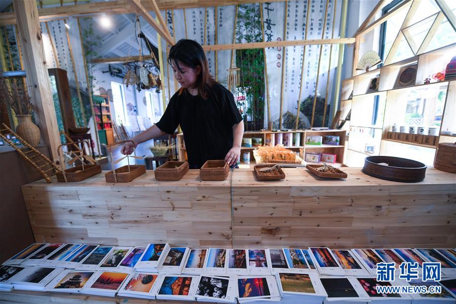 這是妙西鎮(zhèn)一家鄉(xiāng)村小型文化綜合體,集創(chuàng)意、創(chuàng)新、設(shè)計、匠人為一體,同時還有傳統(tǒng)手藝的展示(8月7日攝)。