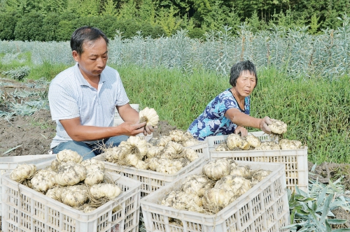 “早幾天開始采挖龍牙百合,大的一砣有1公斤多。今年每畝產(chǎn)量達(dá)3000斤左右,現(xiàn)在鮮百合每公斤20多元,我種的優(yōu)質(zhì)有機(jī)龍牙百合價(jià)格更高,每畝產(chǎn)值可達(dá)三四萬元,產(chǎn)品暢銷!8月4日,湖南省隆回縣金石橋鎮(zhèn)綠遠(yuǎn)一線種植專業(yè)合作社負(fù)責(zé)人劉貴明喜滋滋地說。
