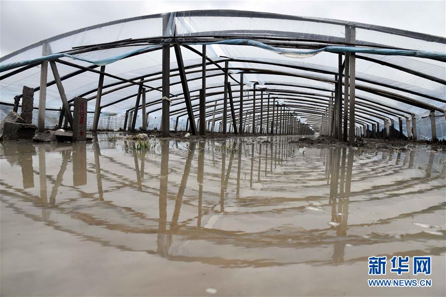8月11日,在壽光市稻田鎮(zhèn)東里村,蔬菜大棚進(jìn)水。