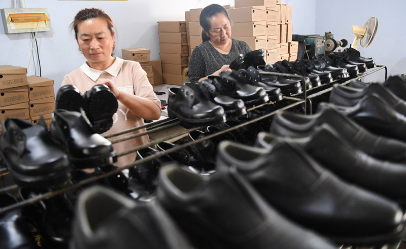 8月22日,廣靈縣騰翔鞋服有限公司員工在檢驗產(chǎn)品,該公司的“扶貧車間”吸納了壺泉鎮(zhèn)商村村民就業(yè)。