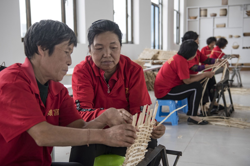8月22日,廣靈縣巧娘宮手工編織專業(yè)合作社員工在制作柳條產(chǎn)品。該合作社在9個鄉(xiāng)鎮(zhèn)建立了編織培訓基地,為農(nóng)村貧困婦女提供了靈活就業(yè)平臺,實現(xiàn)了“門口辦廠,就業(yè)一人,脫貧一戶”的目的。