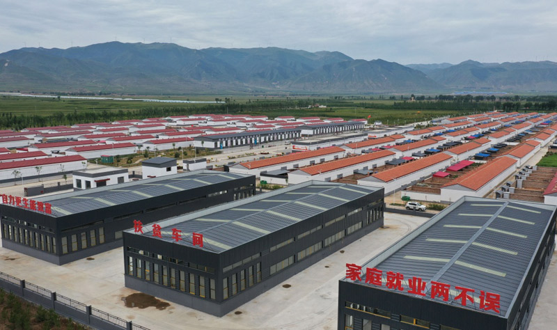 廣靈縣南村鎮(zhèn)易地扶貧搬遷安置點(8月22日無人機拍攝)。該安置點推動有勞動力和就業(yè)意愿的搬遷群眾就近就業(yè),實現(xiàn)“村頭建廠,崗位上門”。