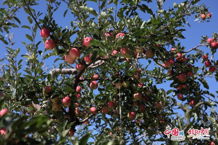 嘎啦品種開始著色,紅彤彤的蘋果已經(jīng)掛滿枝頭。賀冬鵬/攝