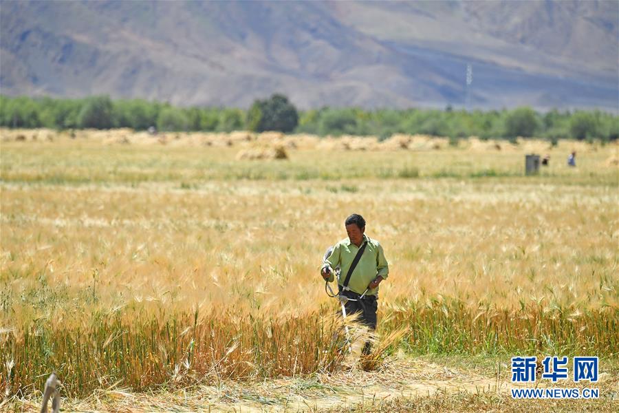位于年楚河畔的西藏日喀則市白朗縣素有“西藏糧倉(cāng)”的美譽(yù)。秋收時(shí)節(jié),一片片成熟的青稞田,猶如金色的地毯,鋪展在大地上。 新華社記者 晉美多吉 攝