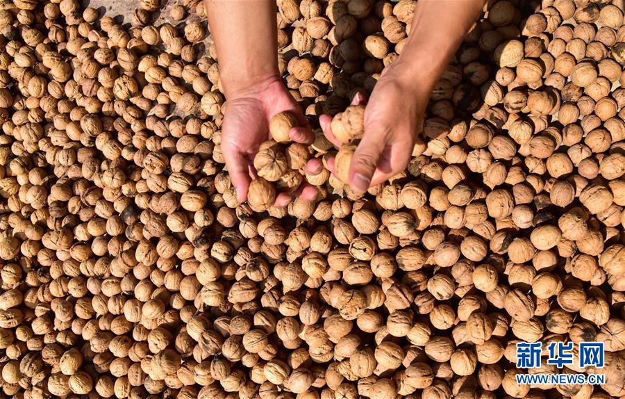 9月8日是二十四節(jié)氣中的白露,河北省邯鄲市涉縣多地農(nóng)民在忙著晾曬豐收的核桃。 新華社記者 朱旭東 攝