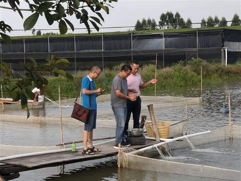 2019年7月29日,在廣東省佛山市三水區(qū)大塘鎮(zhèn)林華的水產(chǎn)養(yǎng)殖園里,來自水產(chǎn)行業(yè)的相關(guān)專家,對中國水產(chǎn)科學研究院珠江水產(chǎn)研究所、佛山市三水順華源水產(chǎn)有限公司共同開展的“攝食飼料翹嘴鱖良種選育”項目進行現(xiàn)場測產(chǎn)驗收。專家一致認為,2018-2019年項目組共培育攝食人工飼料翹嘴鱖苗種76.3萬尾,選育出的翹嘴鱖品種,馴化后攝食人工飼料率為100%。