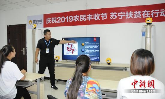 建檔立卡貧困人員正在蘇寧扶貧實(shí)訓(xùn)店內(nèi)接受就業(yè)實(shí)訓(xùn)