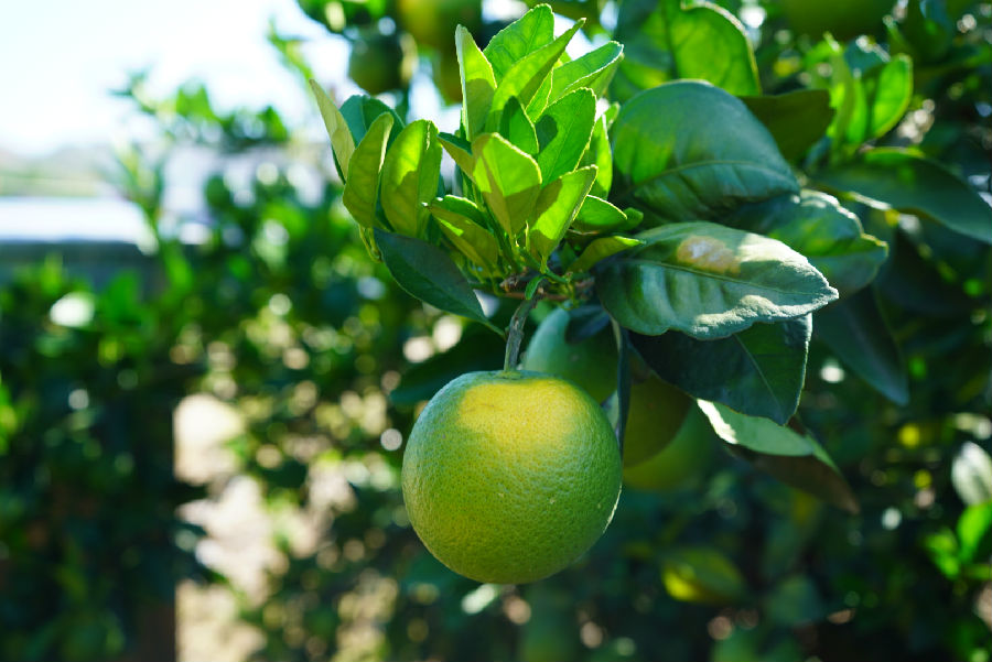 入秋已有一段時(shí)間,贛南的風(fēng)依舊火熱,走進(jìn)江西省瑞金市黃柏鄉(xiāng)龍湖村,萬畝臍橙基地中,圓滾滾的橙子綴滿枝頭,青色的臍橙漸漸被秋風(fēng)染黃,豐收的號角已然吹響。村民鄧大慶捧起一個(gè)臍橙細(xì)細(xì)觀察,片刻后喜笑顏開——今年又有一個(gè)好收成!