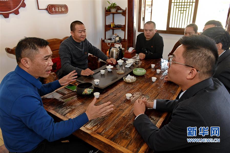 武夷山市星村鎮(zhèn)黃村村茗川世府合作社社員在一起商談經(jīng)營管理事宜(11月5日攝)。新華社記者 張國俊 攝