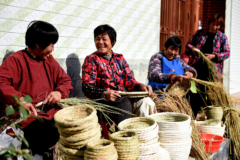 農(nóng)閑時節(jié),山東省臨沂市郯城縣農(nóng)民把收獲的水稻、玉米皮等秸稈晾曬消毒后編制成草編工藝品,通過電商等渠道進行外銷,既避免了秸稈焚燒造成的環(huán)境污染,又增加了收入。當?shù)卣騽堇麑,協(xié)調(diào)農(nóng)商行資金扶持創(chuàng)辦了草編合作社,通過網(wǎng)絡發(fā)布供求信息。目前,全縣有10多個專業(yè)村上萬名農(nóng)民從事農(nóng)作物秸稈編制業(yè)。新華社記者 范長國 攝