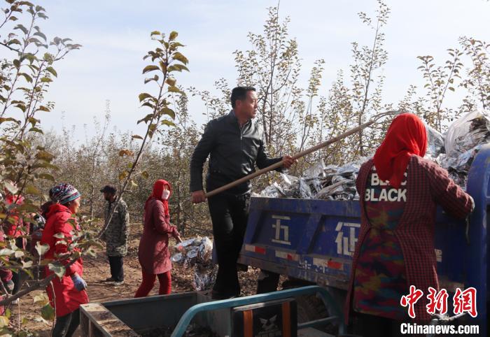初冬時(shí)節(jié),走進(jìn)甘肅慶陽市西峰區(qū)肖金鎮(zhèn)芮嶺村大唐果蔬種植農(nóng)民專業(yè)合作社,合作社負(fù)責(zé)人唐社明和工人正在果園里收拾地里用過的反光膜!蘋果現(xiàn)在已經(jīng)全部入庫了,等過一段時(shí)間蘋果市場行情好一些了,再把蘋果銷售出去。”唐社明說。