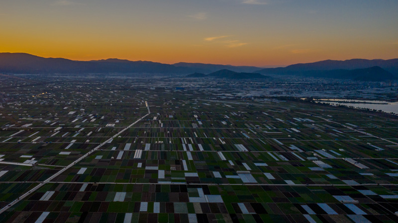 這是云南省玉溪市通海縣的田園風(fēng)光(11月23日無(wú)人機(jī)拍攝)。