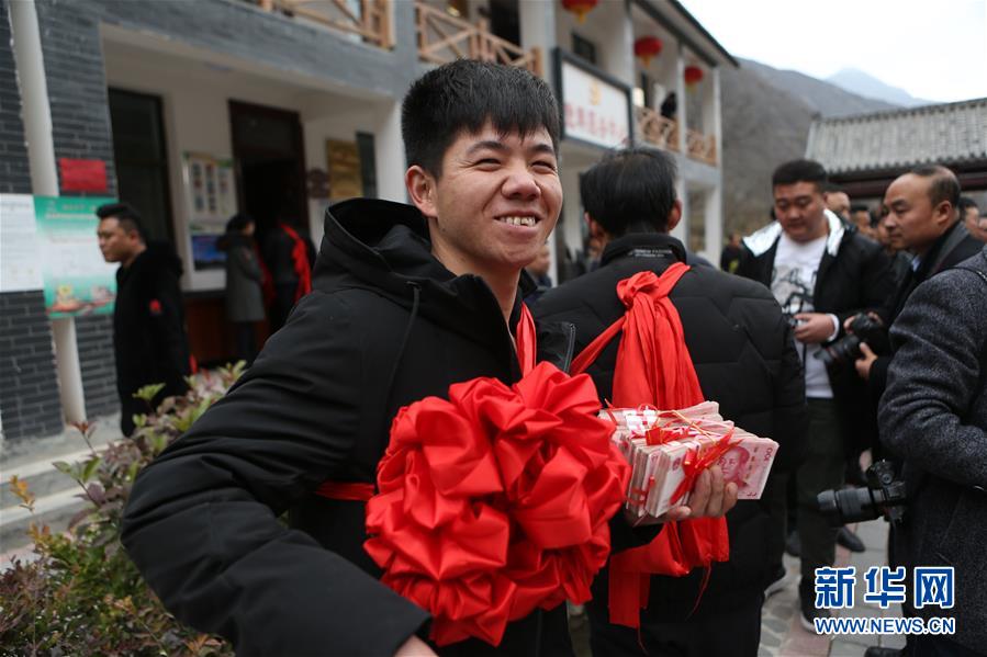11月28日,在甘肅省隴南市宕昌縣官亭鎮(zhèn)付家村,村民在分紅儀式現(xiàn)場領(lǐng)取分紅。