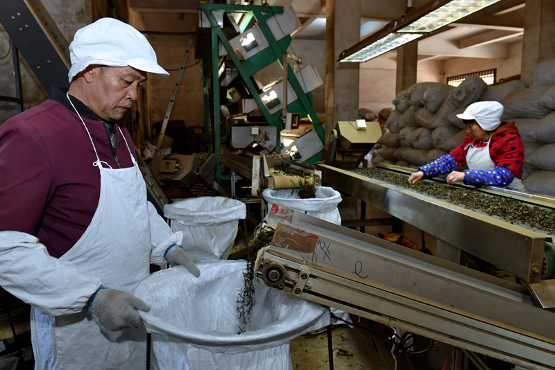 12月9日,茶農在福建武夷山市一家茶廠加工茶葉。