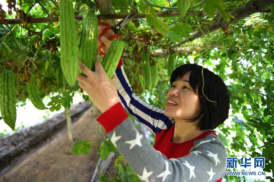 12月12日,村民在玉林市福綿區(qū)沙田鎮(zhèn)蘇立村苦瓜種植基地采摘苦瓜。