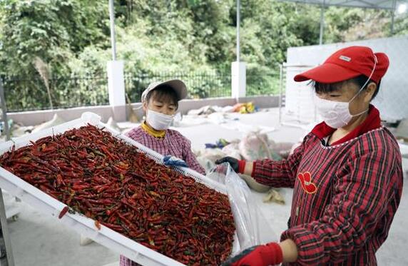 村民正在給辣椒裝盤。特約通訊員 楊元忠 攝