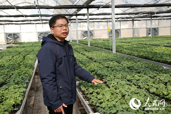 潭頭村第一書(shū)記肖桂花在富硒蔬菜基地育苗中心給記者介紹。黃長(zhǎng)生攝