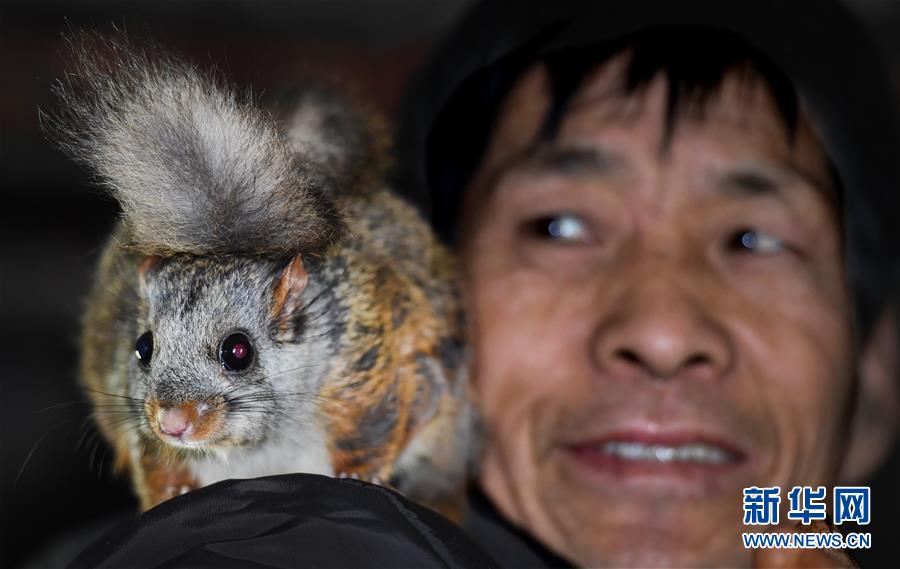 1月19日,洛南縣景村鎮(zhèn)何溝村村民張仲會與他飼養(yǎng)的飛鼠在一起。2019年他家出售飛鼠幼仔和飛鼠糞便,收入30多萬元。