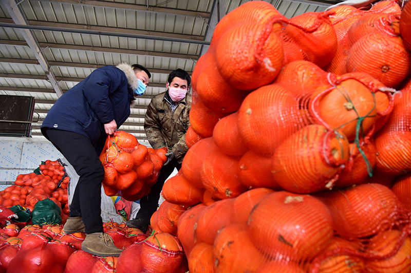 2月4日,在位于河南省鄭州市中牟縣的河南最大的農(nóng)產(chǎn)品批發(fā)市場——河南萬邦國際農(nóng)產(chǎn)品物流城,工作人員在整理蔬菜。