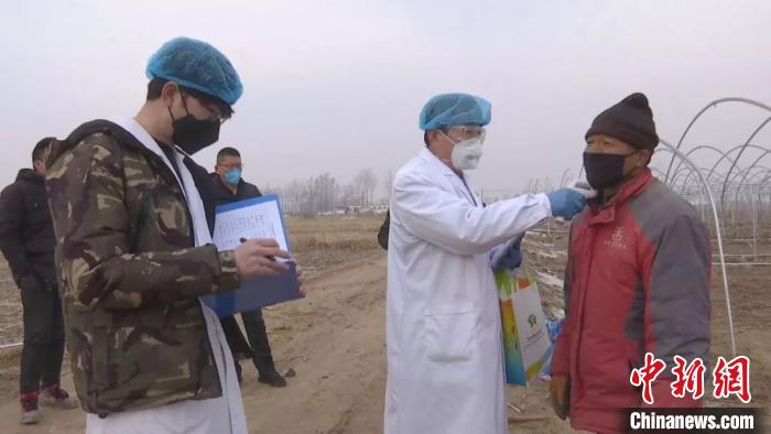 圖為工作人員為農戶測量體溫。 馬欣 攝