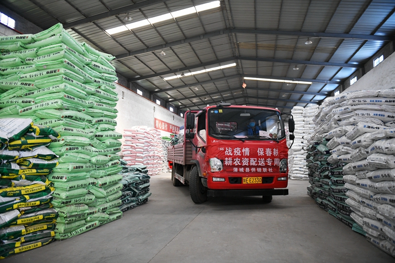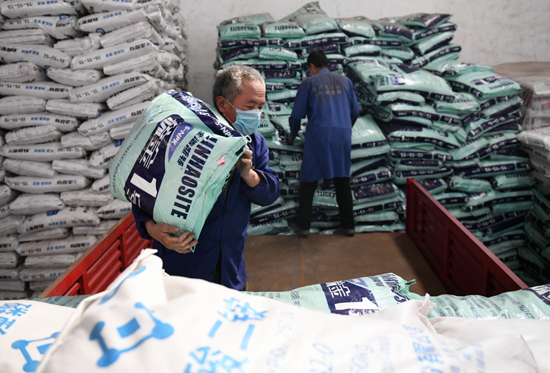 正值春耕生產(chǎn)時節(jié),為確保農(nóng)資供應(yīng)充足,陜西省蒲城縣供銷聯(lián)社組織儲備復(fù)合肥、生物菌肥、土壤調(diào)理劑等各類農(nóng)資2000余噸,通過縣、鎮(zhèn)、村三級農(nóng)資配送服務(wù)網(wǎng)絡(luò),為廣大農(nóng)民提供品質(zhì)可靠的平價農(nóng)資產(chǎn)品。新華社記者 李一博 攝