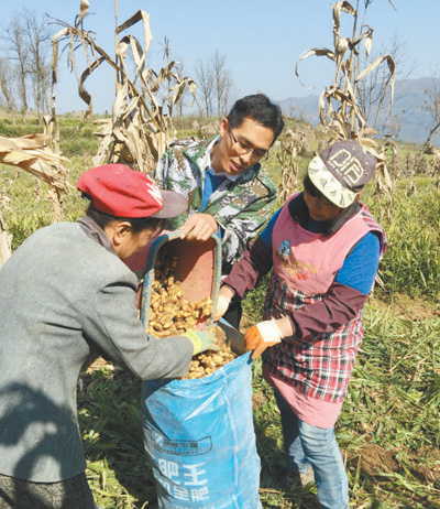 田通(中)與院壩村村民一起收獲小黃姜。 中科院供圖