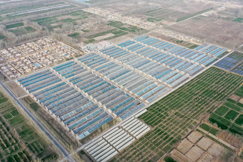 這是3月18日拍攝的莎車縣伊什庫力鄉(xiāng)設(shè)施農(nóng)業(yè)基地(無人機(jī)照片)。