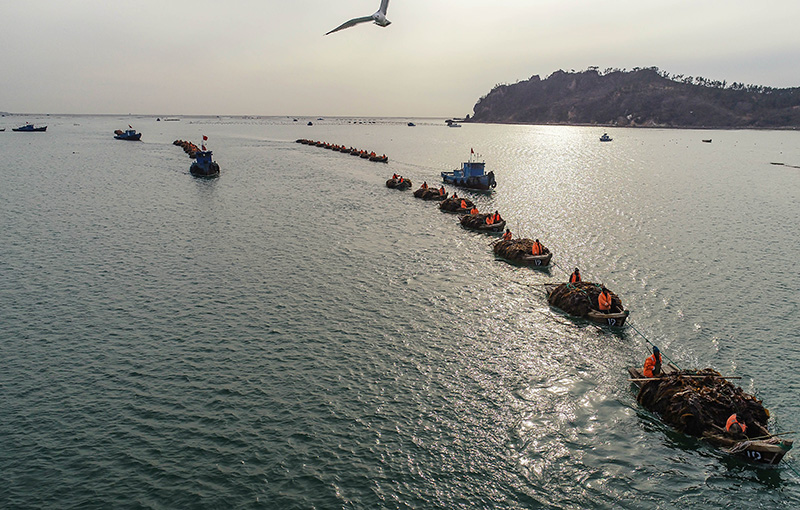 近日,山東省榮成市進(jìn)入海帶收獲季節(jié)。新華社發(fā)(李信君 攝)