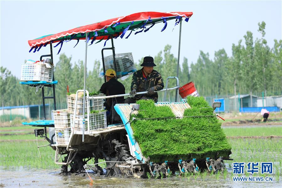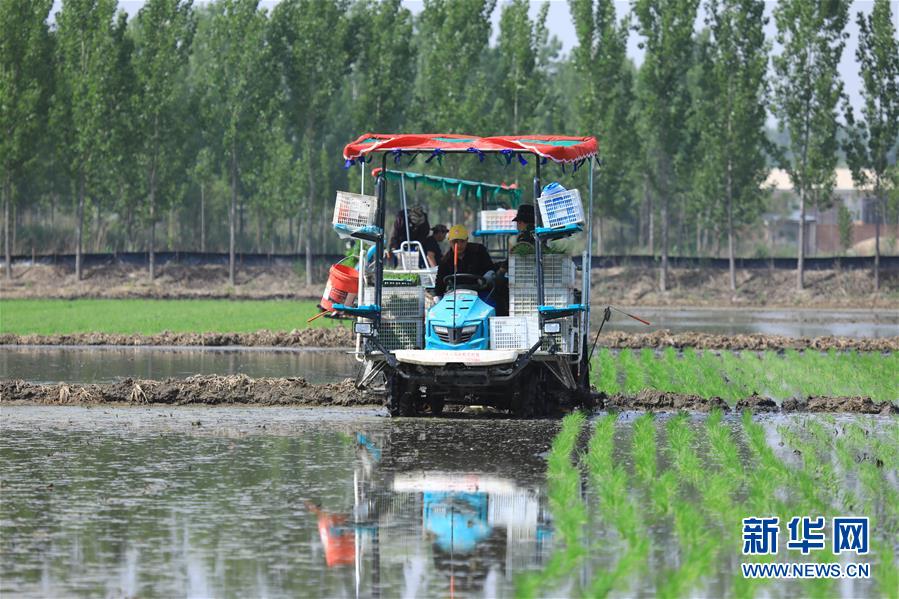 入夏以來,河北省唐山市曹妃甸區(qū)各農(nóng)場開始忙著種植水稻,現(xiàn)代化的機(jī)械插秧大大提高了種植效率,田間地頭一派繁忙景象。 新華社發(fā)(劉柬林 攝)