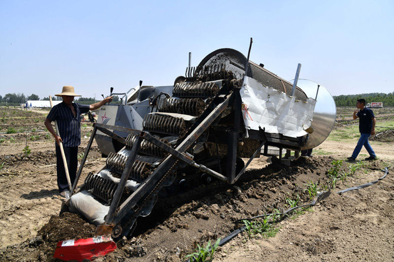 5月24日,在夏津縣雙廟鎮(zhèn)清涼寺村,徐如松(右)和村民在收蚯蚓。