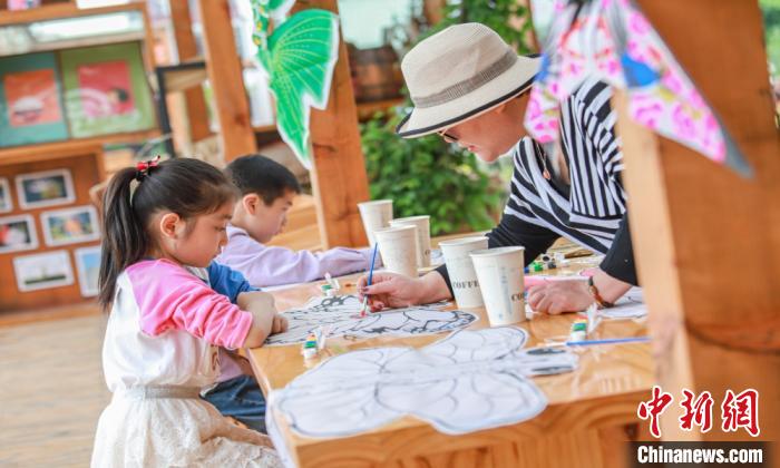 孩子們?cè)趹c豐村畫風(fēng)箏。 王佳慧 攝