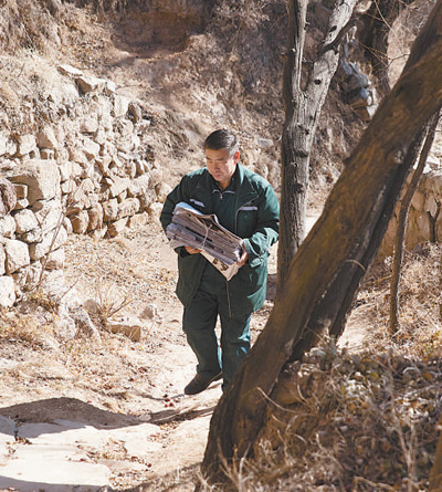 從一個(gè)山頭下來,他又步行前往20分鐘路程外的另外一個(gè)自然村!八土诉@么多年,眼看著山上的樹越來越多,人越來越少!彼肫1985年,剛成為太原市南寒郵政分局大虎溝投遞組的合同工的時(shí)候,那會(huì)更多的是一種驕傲,如今,他則成了堅(jiān)守的代名詞。