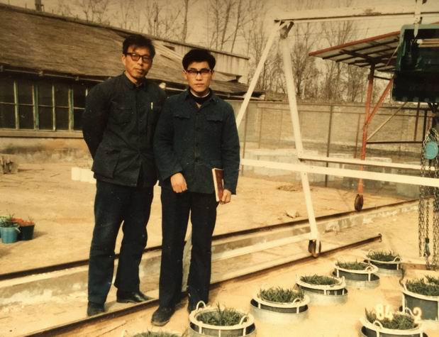 1983年讀研期間的邵明安院士與導(dǎo)師李玉山討論實(shí)驗(yàn)方案
